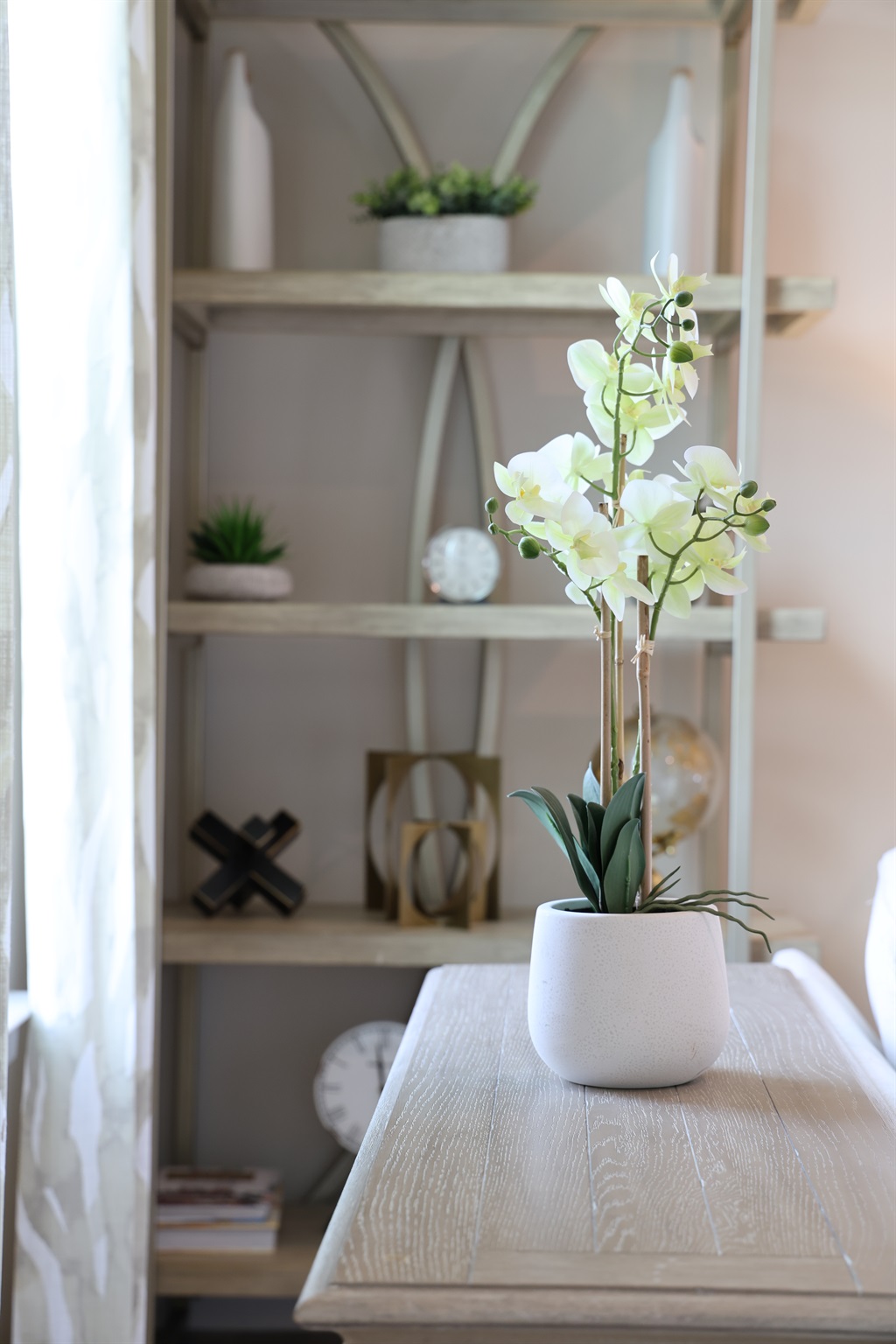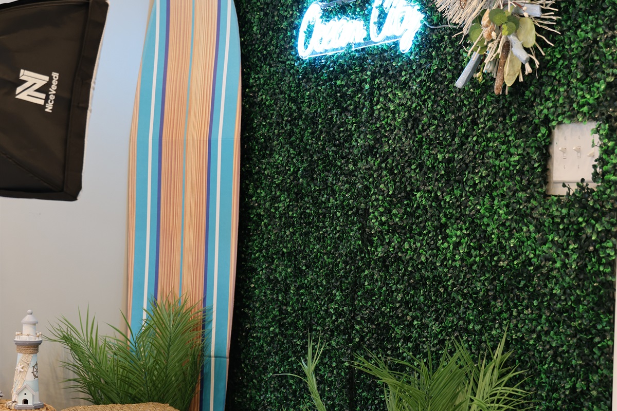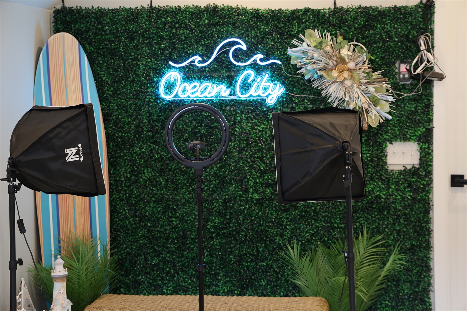 * Decorative photo wall with ring lights & phone holder
