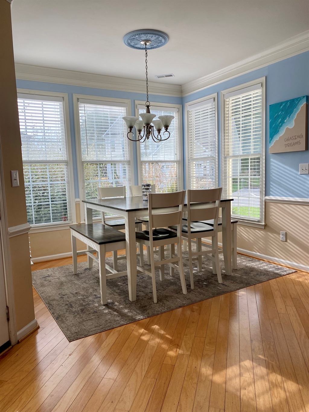 PROPERTY: This large, spacious home includes 5 bedrooms and 5 full bathrooms. Each of the bedrooms all have their own private bathrooms, Roku TVs, closet space and dressers for storing luggage and belongings. 1st floor has a spacious living area with a Roku tv, a sun drenched dining area and a full size kitchen with extra seating at the breakfast bar.