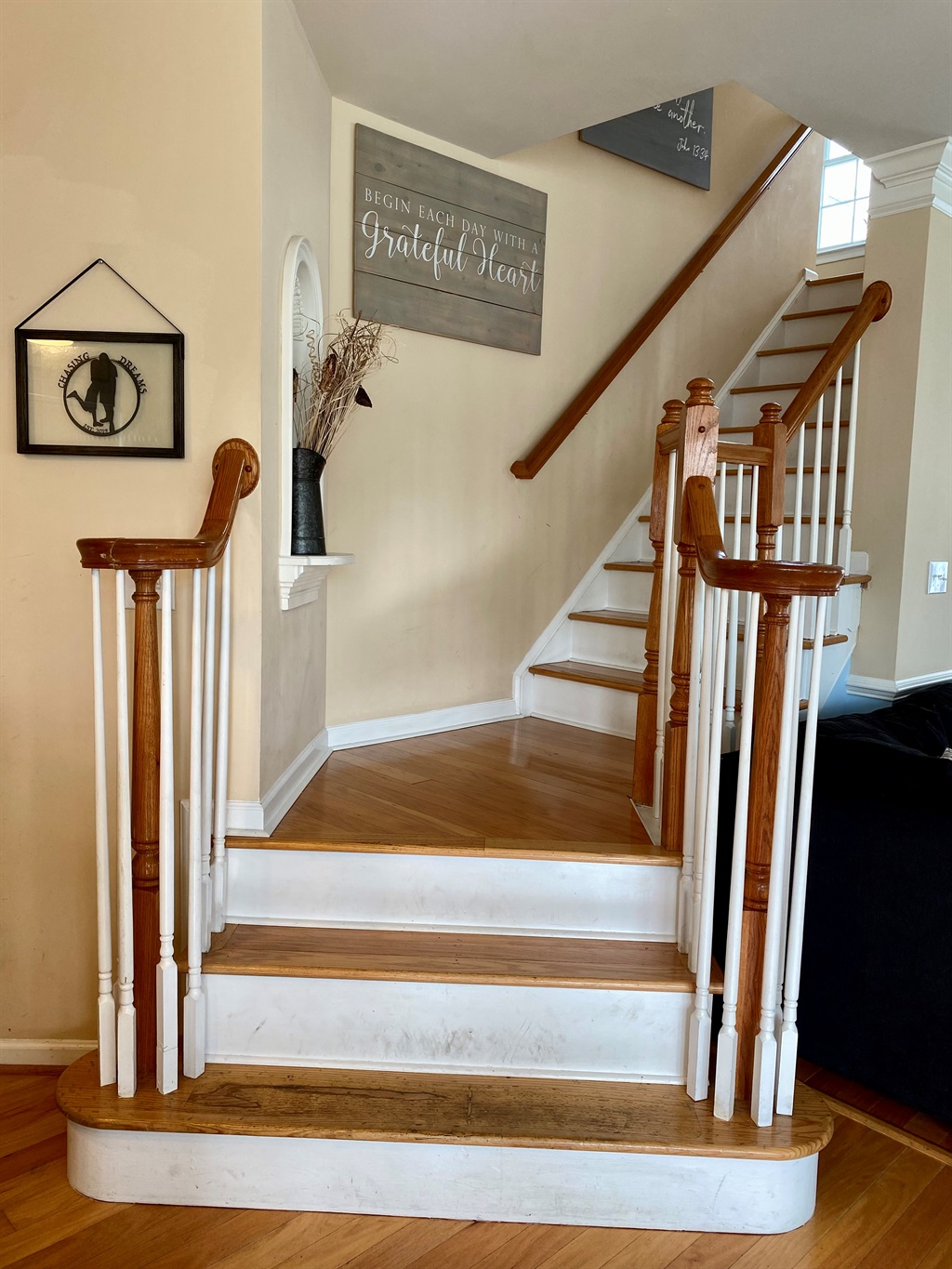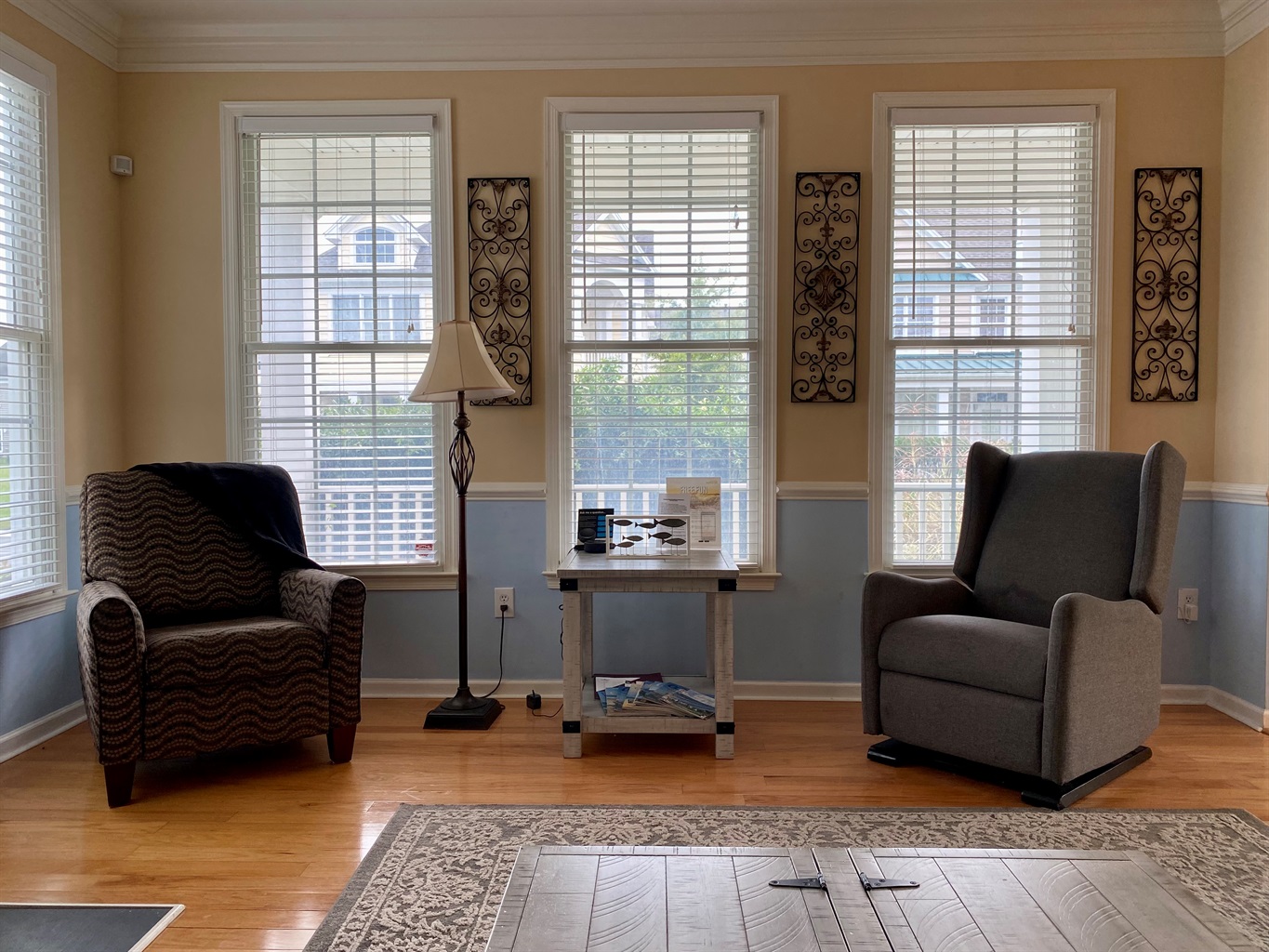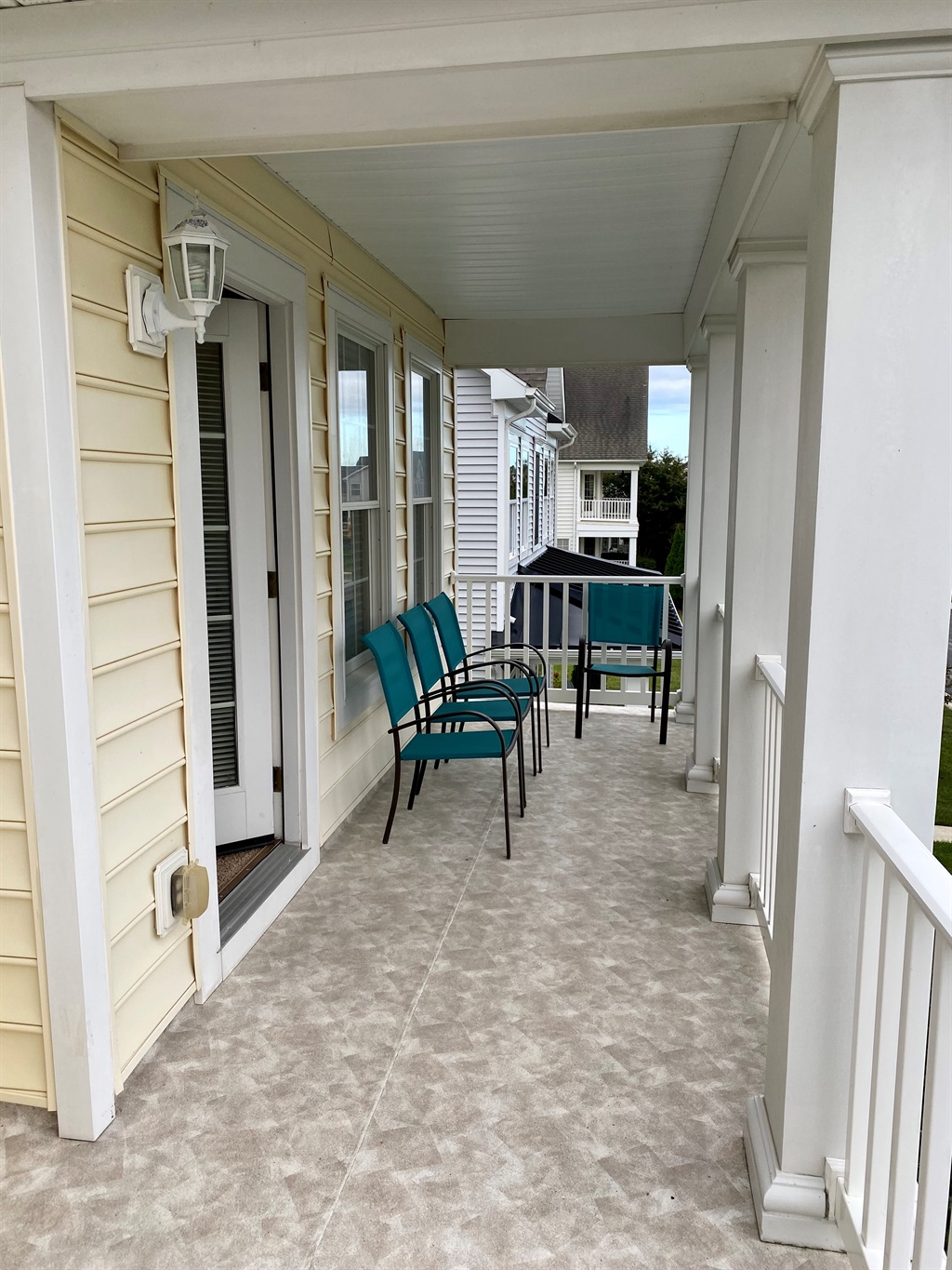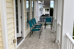 The homes also features a front porch and master bedroom balcony with seating on both levels and garage access with plenty of bikes.